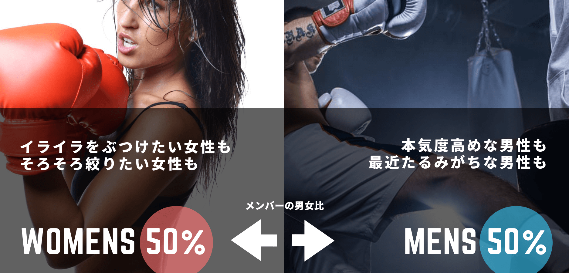 キックボクシングや筋トレなど、安心アンせんな女性専用のプログラム