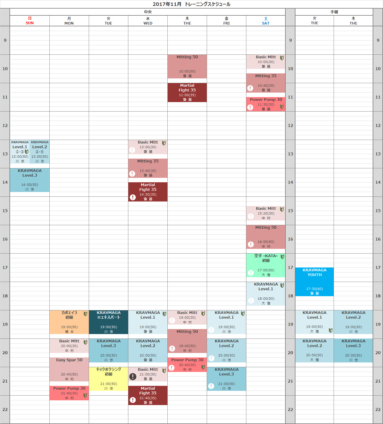 201711レッスンスケジュール