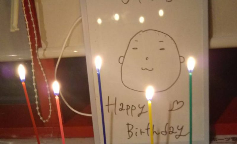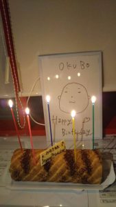 CHISA先生が大窪先生の似顔絵を描いて、一緒にお祝いしていただきましたよ!!