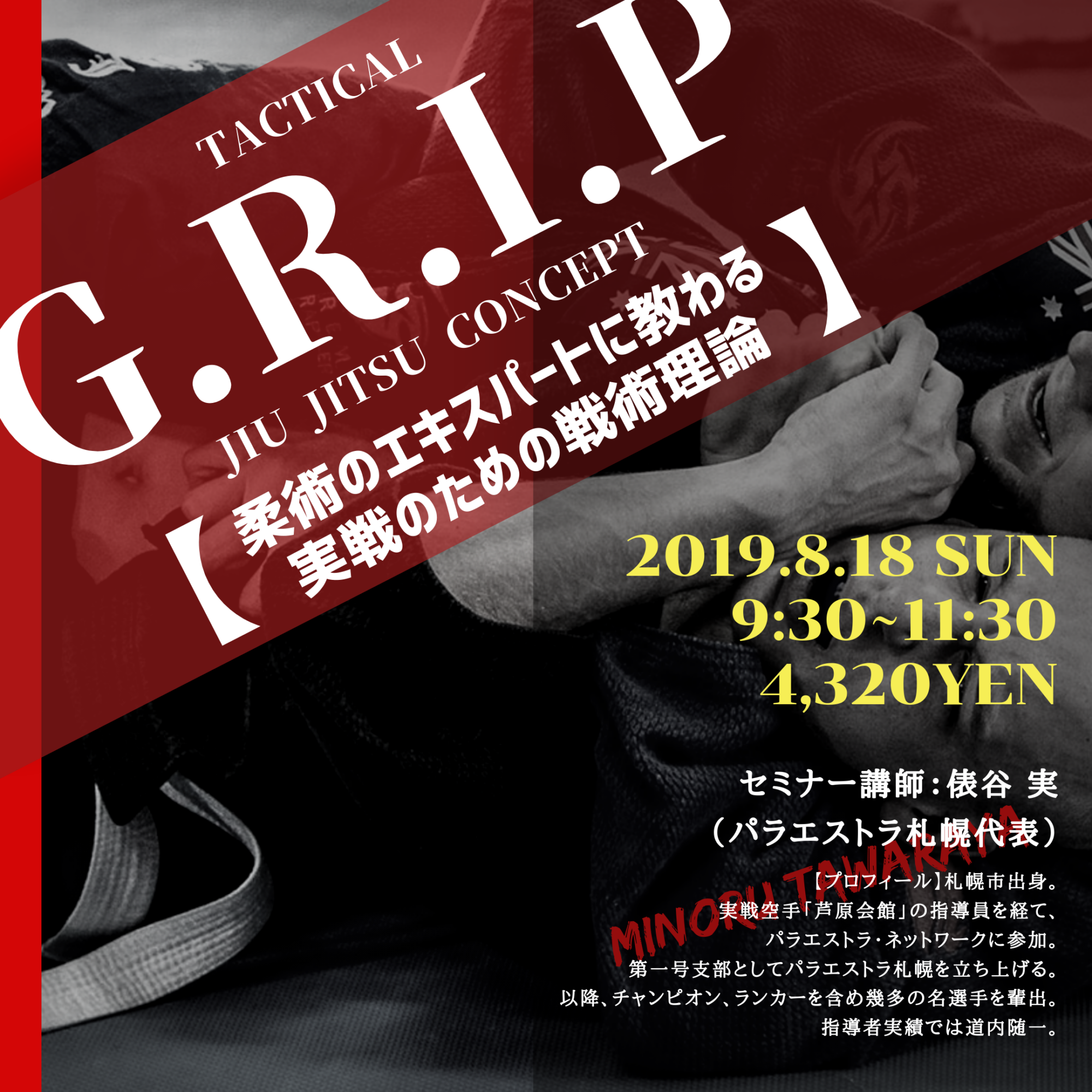 そんな実戦テクニックを習える機会は少ないと思いますが、今回は北海道で初めて柔術を広めた俵谷先生のご協力のもと、ARMS-GYMにてセミナーを開催して頂けるとことになりました!