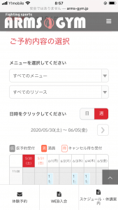 ⬆️レッスンスケジュールから、1ヶ月のスケジュールを確認した後に、