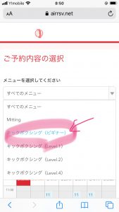 【キックボクシング(ビギナー)】を押してみます。